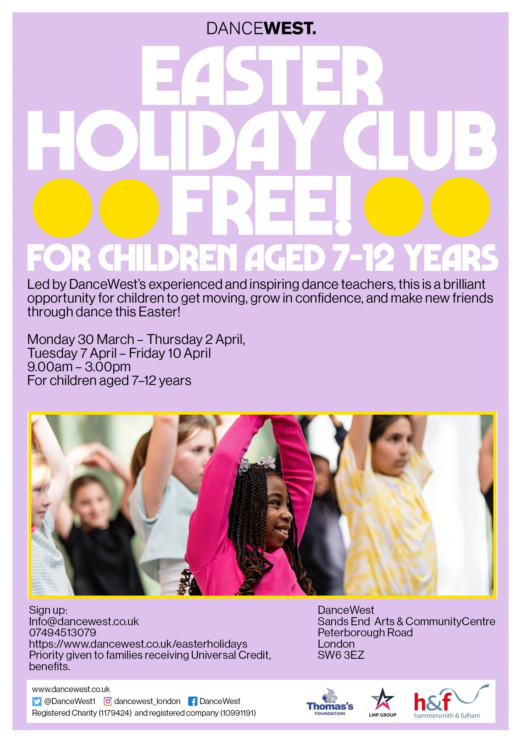 DanceWest is producing a FREE holiday club for children aged 5-11 years this Easter Holiday. Find our more via info@dancewest.co.uk