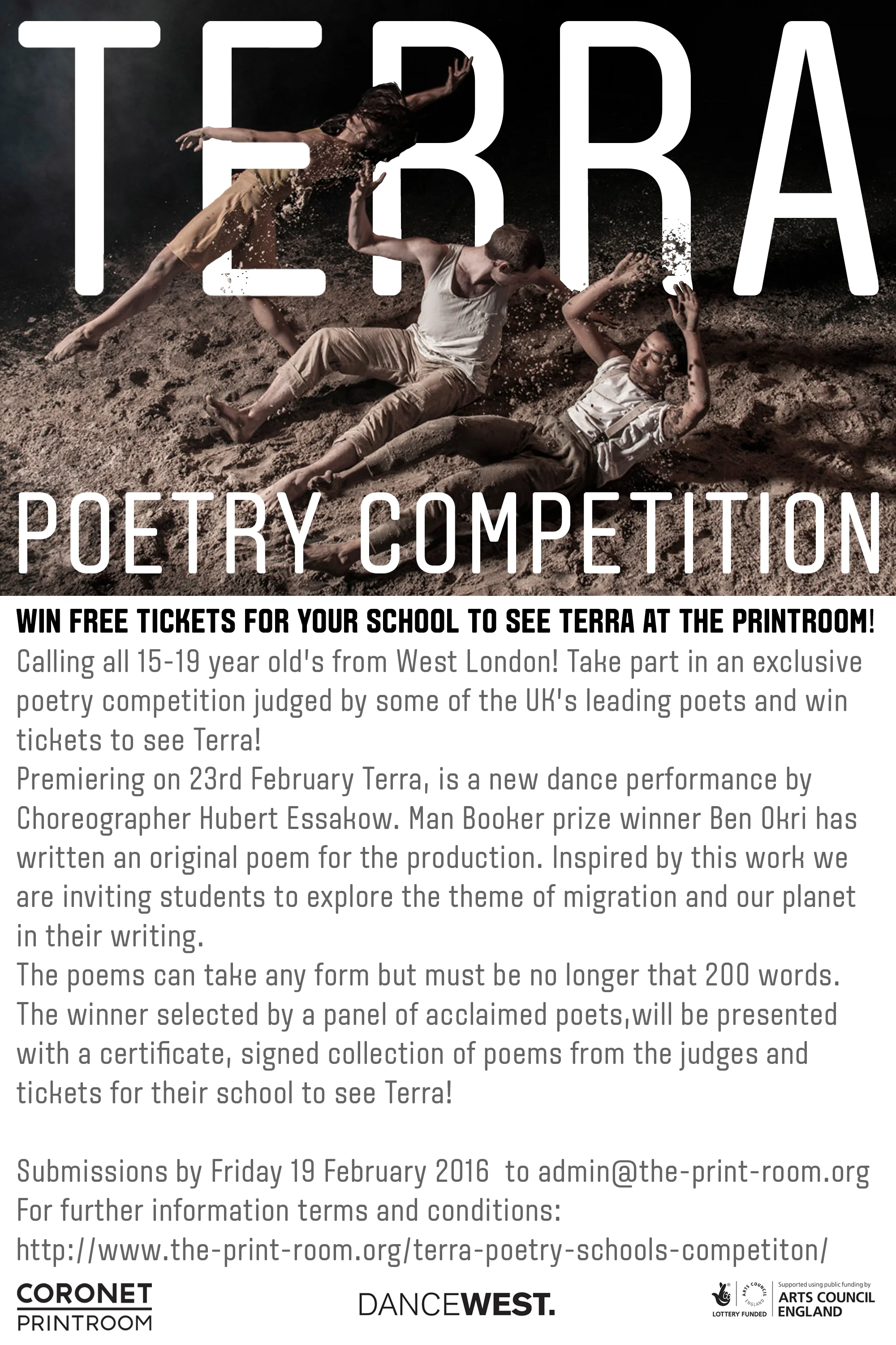 Take part in this exciting poetry competition and win tickets for your school to see Terra by Hubert Essakow. We will also be release details of a special workshop programme. Get in touch for more details: admin@dancewest.co.uk