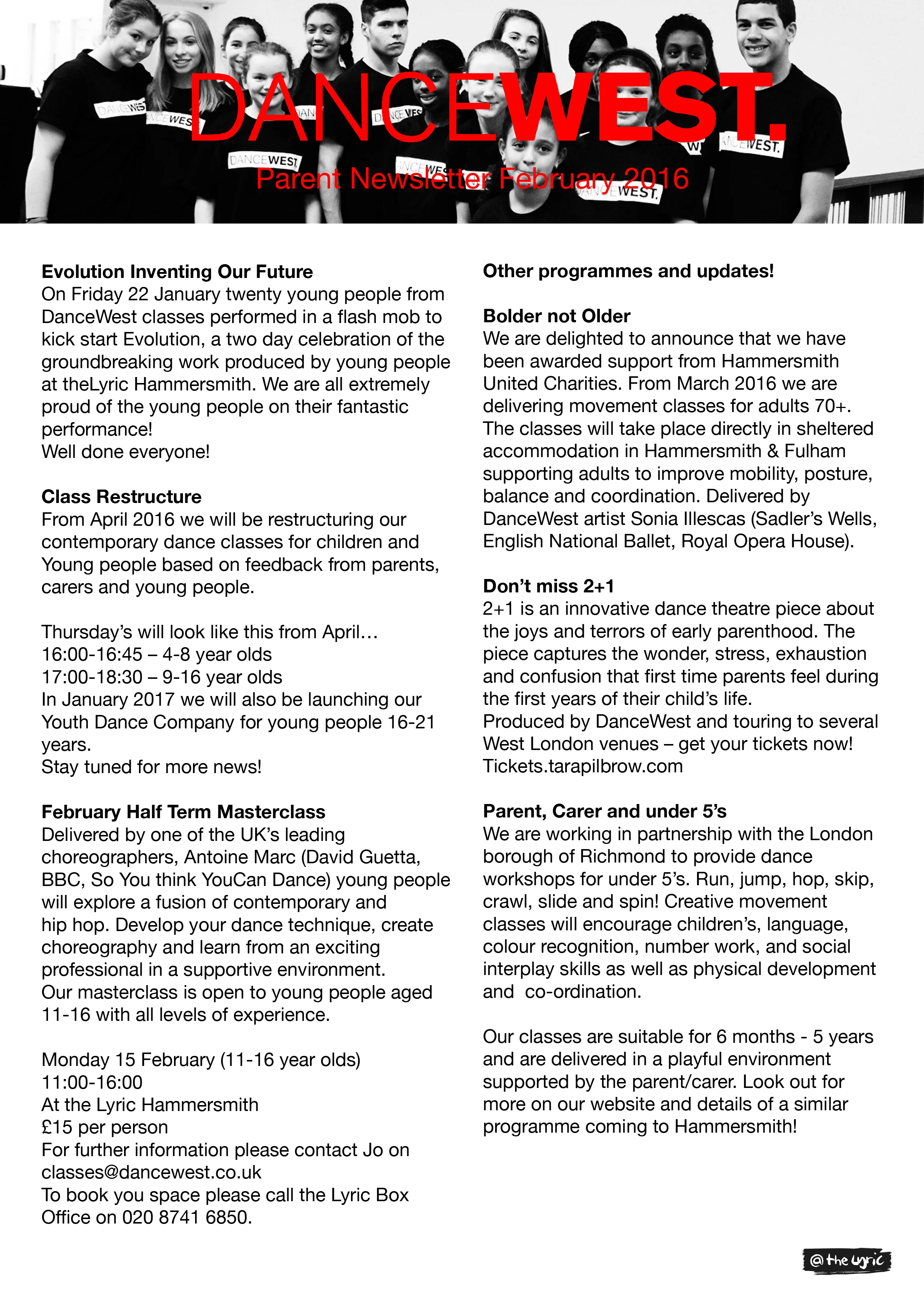 DanceWest February 11, 2016 DanceWest Newsletter February 2016 DanceWest February 11, 2016 Find out more about the new additions to our programme in our latest newsletter.